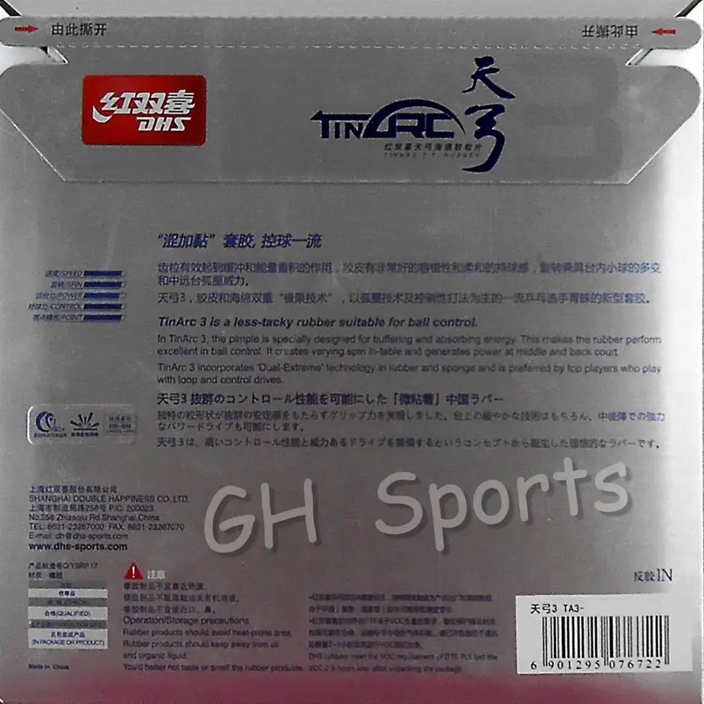 DHS TinArc 3 Pips-in Table Tennis PingPong Rubber With high elastic Sponge for a racket indoor spor